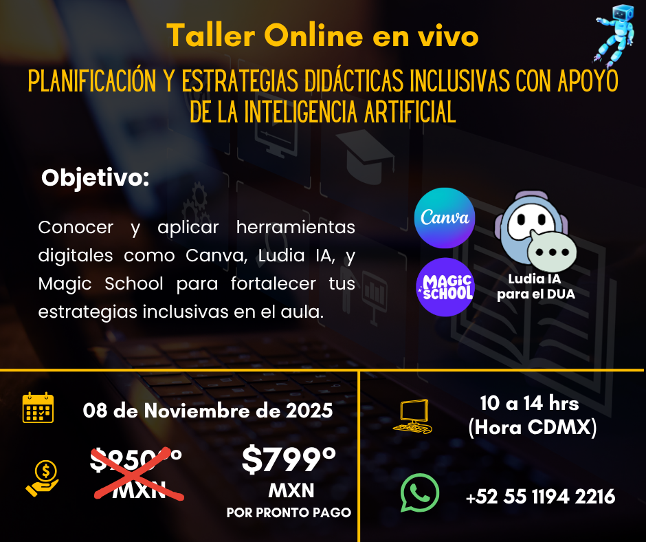 Conocer y aplicar herramientasdigitales como Canva, Ludia IA y Magic School para fortalecer tus estartegias inclusivas en el aula.