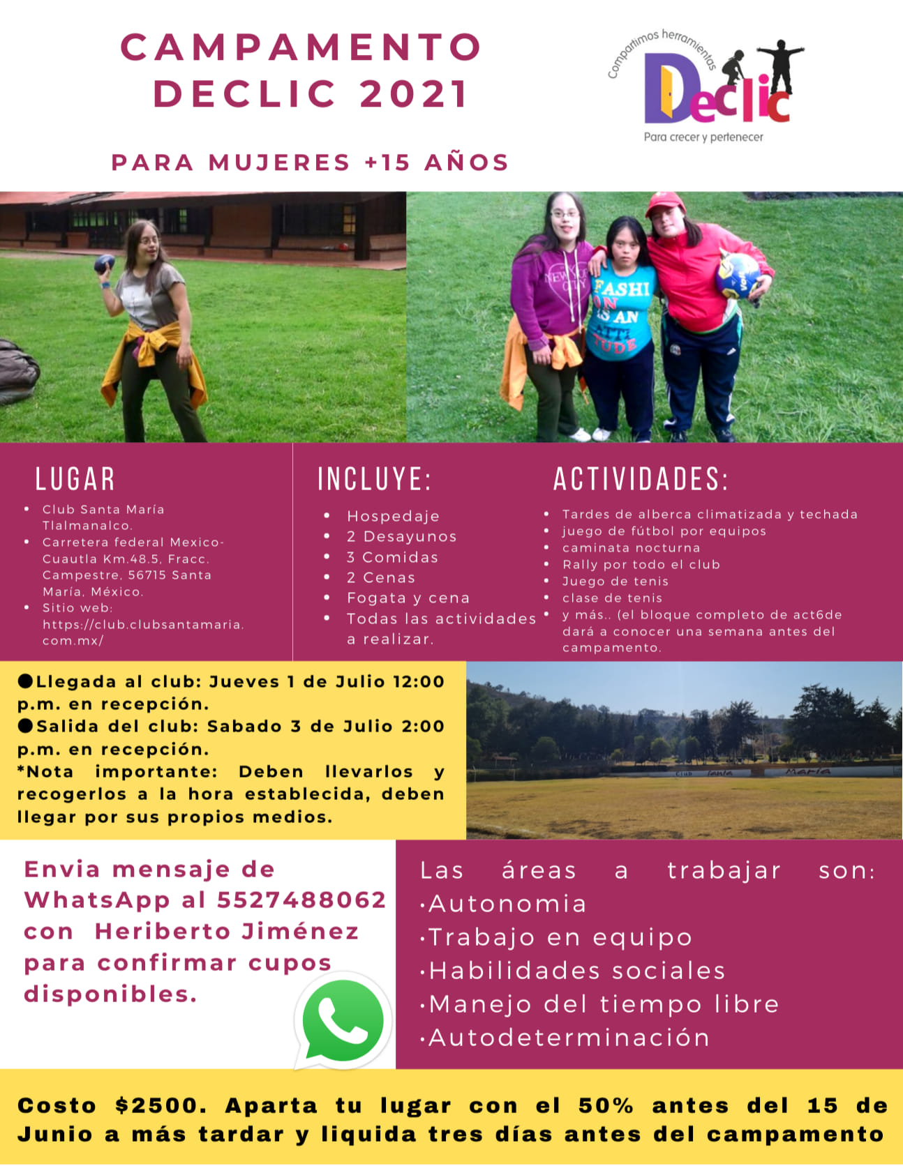 El campamento no fue como lo imaginamos. Siempre hay algo imprevisto que puede cambiar nuestros planes; pero de lo que estoy segura es que la pasamos muy bien y aprendimos mucho de esta experiencia. Aprendimos a confiar en nosotros mismos, a divertirnos en equipo, a preparar y anticipar procesos, en fin, a valorar lo que hemos aprendido y a ponerlo en práctica.Sofia Rodriguez, maestra de apoyo del taller de vida independiente.